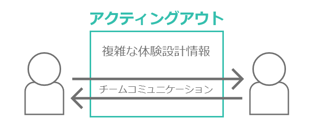 逆に実際にやってみることで沸き起こる⾃然な⾏動や感覚を確認する場合を「アクティングアウト」と⾔います。UXデザインではロールプレイングを含めてアクティングアウトと総称することが多いようです。