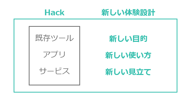 このように⼿近にあるものを利⽤(Hack)し想像⼒を膨らませて、早い段階で体験してみることが体験設計にとって重要です。