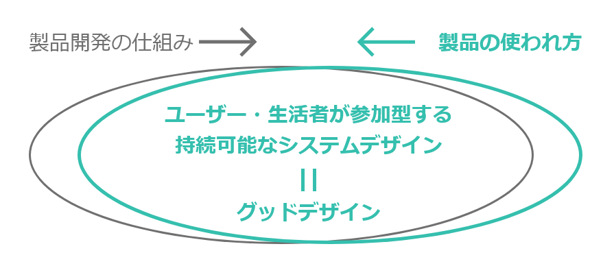 これは製品・サービスが参加型というだけでなく、その開発プロセスに対しても参加型になっている2重構造があり、結果として持続可能で変化・改善のプロセスも内在した壮⼤なシステムデザインになっています。